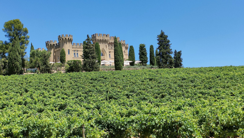 Cigales frénétiques, ciel bleu insolent, soleil triomphal, château néo-médiéval...