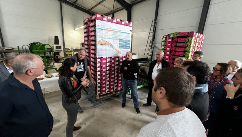 Aux côtés de Julie Vié, il accueille la visite organisée par la FDSEA de Vaucluse, mardi 17 octobre. Avec Jean-François Cartoux, qui représentait la présidente de la Chambre d'agriculture, il explique les caractéristiques de l'agriculture en Avignon, si particulière et pourtant malmenée au fil des ans. Dans le hangar qui jouxte sa serre de trois hectares, érigée en 2015, ils sont nombreux à l'écouter : Cécile Helle, maire de la ville, Pierre-Roger Gontard, son adjoint délégué au développement territorial et urbain, Sylvain Bernard, secrétaire général de la FDSEA 84, François Gorieux, directeur départemental des territoires, et Mathilde Revol pour les Jeunes agriculteurs...