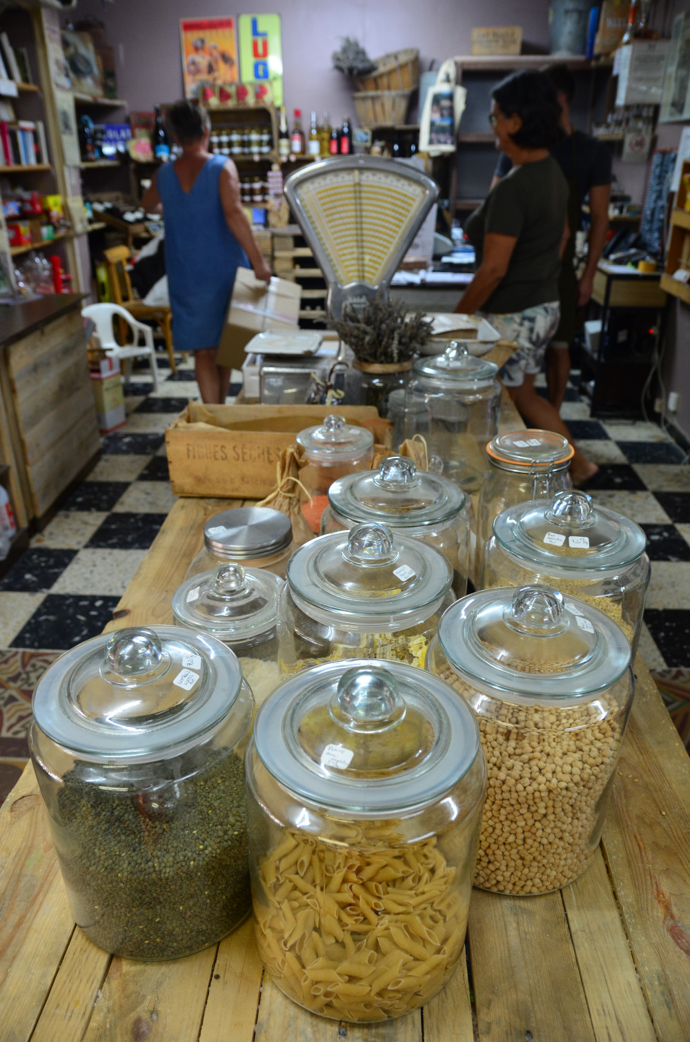 Aujourd'hui, quand on lui demande le secret de longévité de l'épicerie, il répond sans hésiter : "Notre disponibilité, le fait que nous soyons ouverts tous les jours, tôt le matin et dans la soirée. Mais aussi le fait que nous nous approvisionnons nous-même, hors de tout réseau, et le plus possible auprès de producteurs locaux" : vins ou miel de Flassan, petit épeautre et porc du Plateau d'Albion, bière et saucissons de Carpentras, cartes postales venues de Saint-Pierre-de-Vassols... sans compter le bel étal de fruits et légumes, en majorité locaux.