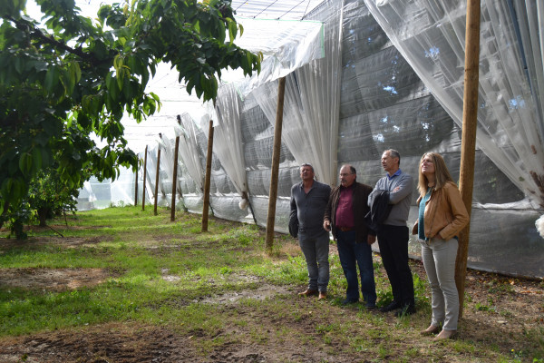 Avant l’AG, René Reynard a présenté à Christian Mounier, vice-président du Conseil départemental, et Sarah Moyse, nouvelle directrice du CTIFL de Balandran, la parcelle protégée par un filet inscet-proof en mono-parcelle également équipé d’une bâche