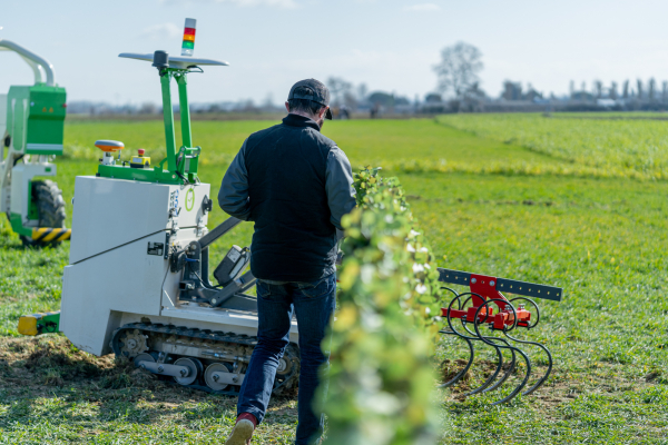 Tout autonome et électrique, le Slopehelper de la société slovène PeK Automotive a été conçu pour satisfaire les besoins sur tout l'agro-cycle, à la vigne et au verger. Cette plateforme de base robotique convient à l'attelage d'outils variés (broyeur, herse rotative, coupeur horizontal et vertical, pulvérisateur…), et combine une solution contrôlée par intelligence artificielle, via l'application mobile TeroAIR. De la taille aux étagères de récolte mobiles, en passant par le désherbage, le Slopehelper reste stable dans les pentes. “Révolutionnaire”, selon le constructeur, l'engin réduit l'intervention humaine de 90 %, tout en aidant à diminuer les doses de fongicides et les émissions de carbone, s'arrêtant une fois la tâche accomplie, ou lorsque les batteries sont à 20 %.