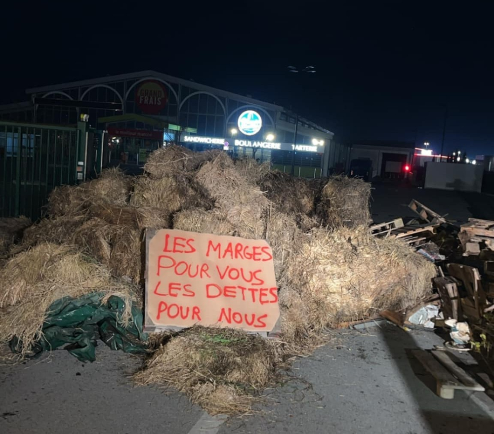 Depuis plusieurs jours, les différents cantons des Jeunes agriculteurs, fermement soutenus par la FDSEA 84, organisent des manifestations devant les magasins "qui ne jouent pas le jeu", explique Benoît Lurie, du canton Orange Est. Grand Frais, Lidl, Aldi, Leclerc... "On fait ça pour toutes les filières, car on est tous concernés", précise Jordan Charransol, président des Jeunes agriculteurs 84. À l'heure où les négociations commerciales sont actuellement sur la table, "on veut montrer qu'on est là", insiste-t-il. Les agriculteurs, toutes filières confondues, ont déjà écumé une partie des hard-discounts, hyper et supermarchés du département, déversant fumiers, ballots de paille, palettes, vignes à l'entrée des magasins.