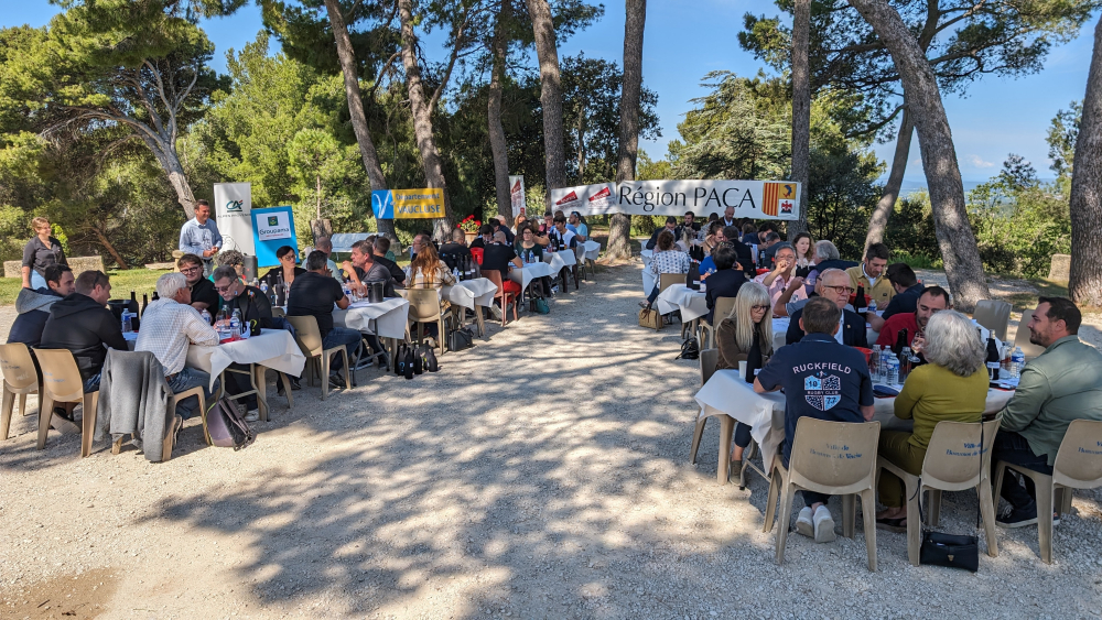 Le cadre est époustouflant, l'abondance d'un soleil presque zénithal tempéré par de hauts pins dignes de Cézanne, la température idéale... Tout cela n'avait d'égal que la qualité des vins présentés, et comme toujours, difficiles à départager... Car cette année encore, les Jeunes agriculteurs, montés au créneau pour une organisation sans faille, sont aux anges. Leur président, Jordan Charransol, souligne : "Aujourd'hui, cette dégustation pour les Trophées du savoir-faire vigneron, c'est plus qu'un moment important : c'est la 24e édition que nous faisons, c'est un événement qui permet à tout le monde de voir que dans l'agriculture vauclusienne, malgré les temps un peu durs, nous faisons des vins de qualité et la passion des vignerons reste intacte".