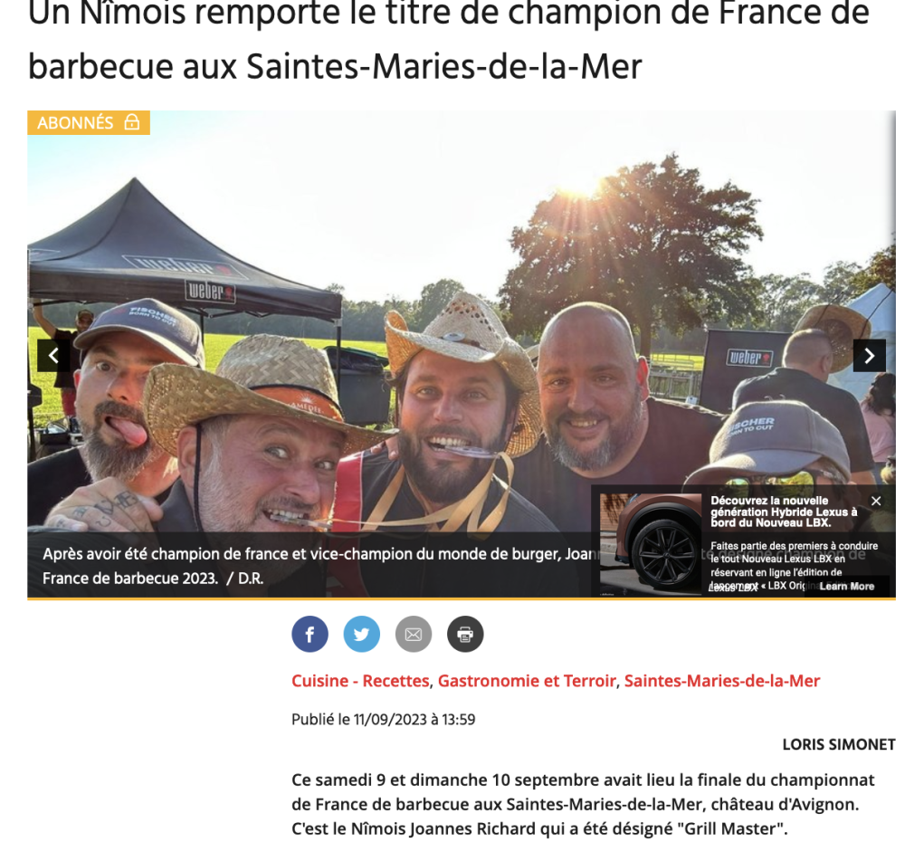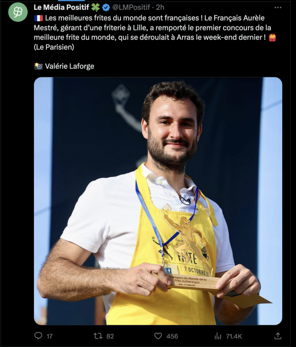 Quel est le comble pour une pomme de terre ? C'est qu'elle s'effrite. Le Français, Aurèle Mestré, gérant d'une friterie lilloise depuis un an, a remporté le premier concours de la meilleure frite du monde, qui se déroulait à Arras dans le Pas-de-Calais, le week-end dernier. Une trentaine de participants venus du monde entier se sont affrontés. "C'est un scandale de nous voler un titre comme celui-ci. C'est comme si un Italien gagnait le championnat du monde de paella ! C'est bien simple, ça devrait être qualifié de délit de frites", lance Alex Vizorek, au micro de RTL. "Si une frite n'a pas de mayo... elle ne peut pas aller à la piscine", ni aux Saintes-Maries-de-la-Mer, où avait lieu un autre championnat d'anthologie début septembre : les championnats de France de barbecue. Créés il y a dix ans, ils ont couronné 'grille master' le champion de France et vice-champion du monde de burger, le Nîmois Joannes Richard, ex aequo avec une équipe de... Savoie. Un peu de reblochon et de brandade sur votre burger ?