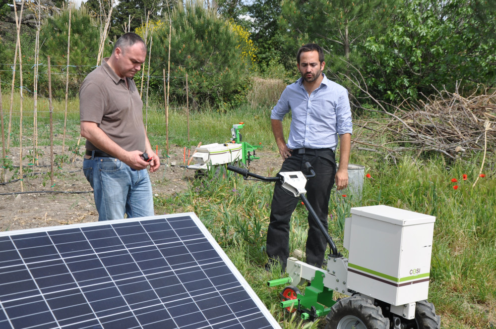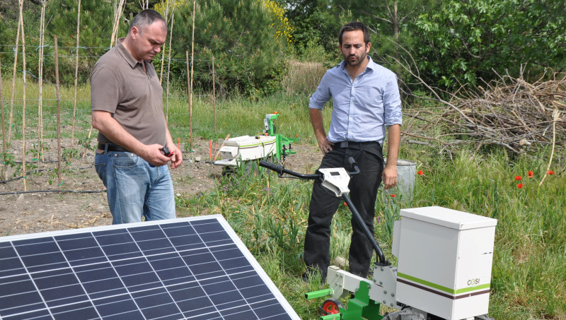Depuis 2011, Naïo technologies développe un robot d’assistance au travail et de désherbage mécanique destiné au maraîchage. « Le prototype a été présenté en 2012, et le premier exemplaire vendu en 2013 », explique Paul Pampuri, commercial Sud-Est. Aujourd’hui, la société compte une quarantaine d’utilisateurs en France et en Europe. Elle travaille aujourd’hui sur un nouveau robot dédié à la vigne et aux légumes de plein champ. « Il sera présenté cet été et lancé lors du prochain Vinitech », précise Thibaut Delcroix. Le robot, en version enjambeur, aura une amplitude de 2 mètres de côté. Il sera capable de travailler 25 ha contre une dizaine pour sa version maraîchère.