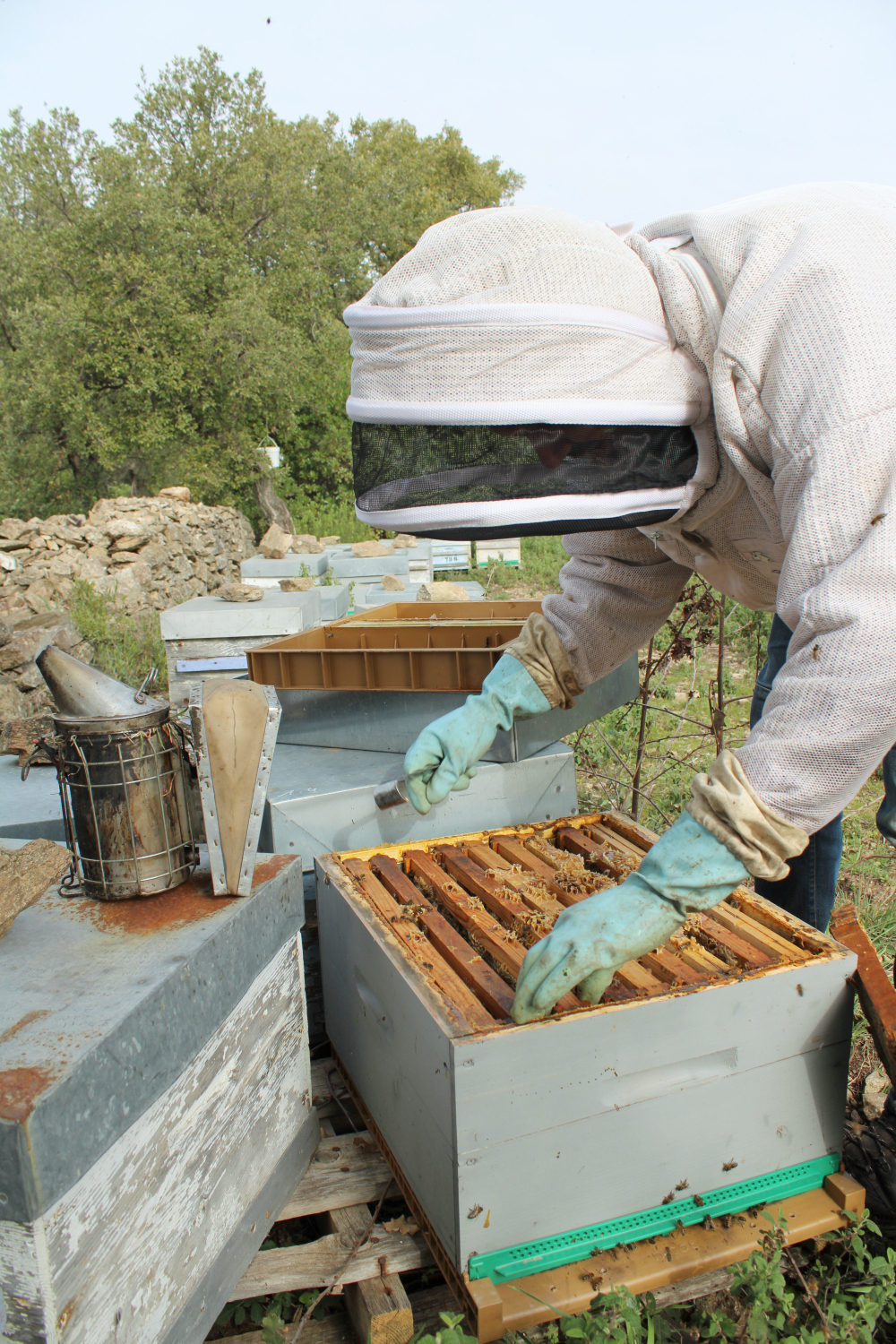 Installé en tant que professionnel en 2011 à Carcès, il travaille depuis trois ans avec sa femme, Sophie, qui s'occupe des mises en pot, des commandes, des livraisons et de la gestion administrative, permettant à Frédéric de consacrer plus de temps à ses 350 ruches et aux abeilles, "qui demandent de plus en plus de soins et d'attention avec les changements climatiques, et notamment la sécheresse", explique l'apiculteur.
