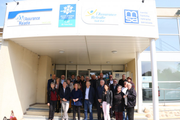 Autour de la présidente Marie-Claude Salignon, de la directrice, Anne-Laure Torresin, les directeurs de la CAF et de la CPAM, Christian Mounier, vice-président du Conseil départemental, et les administrateurs de la MSA Alpes-Provence.