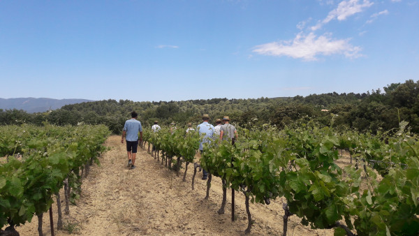 Arrivée au Grand Vallon, dans les vignobles de Marrenon, pour une explication des travaux à la vigne. (© CP)