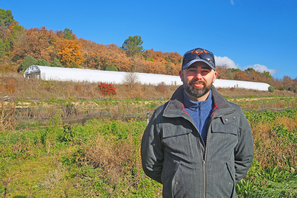 C'est à l'abri d'un tranquille vallon, à quelques kilomètres de Valréas, que se niche 'Les escargots de l'Enclave', l'exploitation hélicicole d'Olivier Clavel. En arrivant sur le site, on est marqué par sa forte ressemblance avec une entreprise viticole. "Et pour cause !" explique-t-il aussitôt : "Quand j'ai repris la suite de mon père Marc, en 2007, nous étions effectivement des producteurs de raisins de cuve, que nous apportions à la cave coopérative La Gaillarde. J'avais fait un CAP et un bac pro viticole, dans l'idée de prendre la suite. Mais à ce moment-là, la crise viticole frappait à plein, et l'avenir me paraissait plutôt inquiétant".