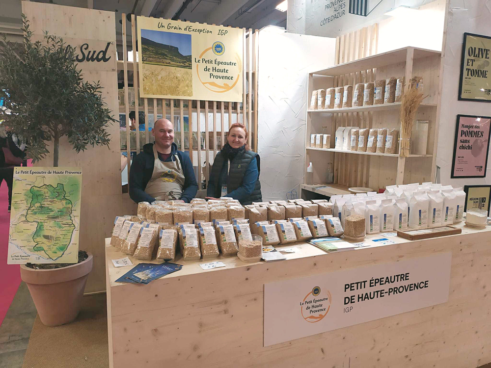 Déjà, en 2022, l'association avait participé au Salon de l'agriculture, afin d'amplifier sa promotion. En 2023, les producteurs étaient de retour. Du 24 au 26 février, des animations à destination des enfants, notamment des ateliers de fabrication des pâtes, ont été organisées sur les stands du département de la Drôme et des Alpes-de-Haute-Provence. Sur le stand de la région, du 3 au 5 mars, une boutique éphémère prenait place, afin de commercialiser grains et farines de petit épeautre de Haute-Provence. Une opération marketing et communication réussie, puisque le ministre de l'Agriculture, Marc Fesneau, s'est autorisé un détour par le stand en délégation avec l'INAO.
