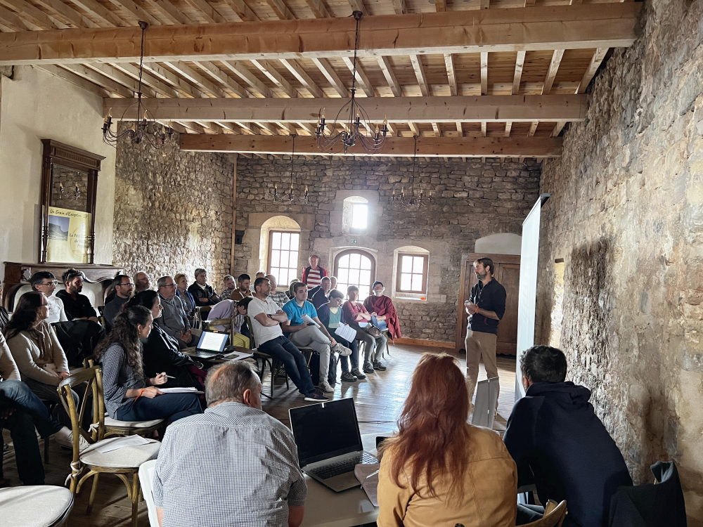 Cette année, le cadre de l'assemblée générale du Syndicat du petit épeautre de Haute-Provence et son association de producteurs est exceptionnel ! Surplombant les plaines vauclusiennes sous l'œil bienveillant du Ventoux, et le regard porté sur les Dentelles, les producteurs se sont donné rendez-vous au château du Barroux, vendredi 12 mai dernier.