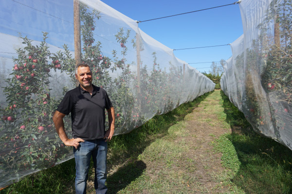 « J’étais ouvert aux essais, donc j’ai participé au développement des filets Alt’Carpo mis au point par Guilhem. » Après deux ans d’essais, ils couvrent progressivement chaque nouvelle parcelle plantée, avec un palissage adapté, solide et plus élevé. « Donc, aujourd’hui, nous traitons seulement contre les pucerons. Mais le suivi technique par la Chambre reste précieux pour positionner les traitements, en hiver et avant la floraison. Parfois, Guilhem m’appelle pour me conseiller d’aller observer les vergers, ça me permet de mieux anticiper. Et puis nos poiriers ne sont pas résistants à la tavelure, donc une erreur de traitement peut faire perdre la moitié de la récolte ».