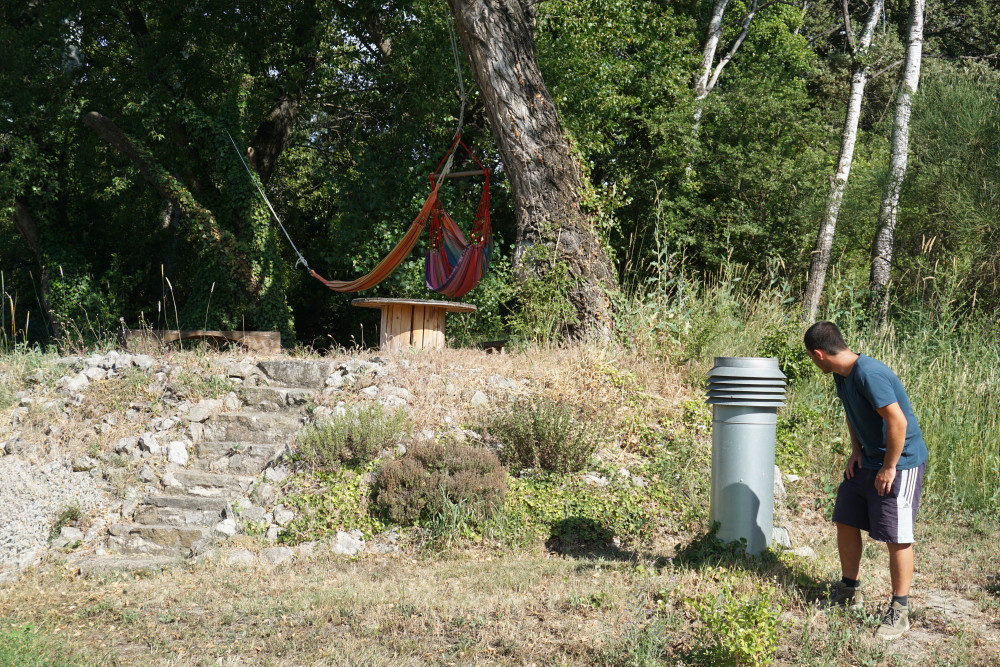 Le but du puits provençal est de profiter de la stabilité de la température du sol (12-13°C à environ 2,5 m de profondeur) pour rafraîchir ou réchauffer l’air intérieur, quand les températures fluctuent. "Chez Matthias, une gaine en polyéthylène alimentaire de 90 mètres linéaires est enterrée dans le sol, à trois mètres de profondeur. La recommandation est de deux mètres, mais en présence d’un sol sableux et sec, les échanges calorifiques sont moins efficaces : il a donc choisi de placer la gaine un peu plus en profondeur pour compenser", détaille Bio de Provence, qui organisait l'été dernier plusieurs visites thématiques climat, énergie et biodiversité. "Le principe est le suivant : l’air extérieur rentre par une cheminée extérieure, reliée à la gaine. L’air est acheminé sur 90 mètres à trois mètres de profondeur et subit des échanges calorifiques, il se rafraîchit l’été. La gaine débouche à l’intérieur du bâtiment, et l’air rafraîchit les pièces. Une VMC double flux évacue ensuite l’air à l’extérieur pour créer un cycle continu", poursuit l’équipe de Bio de Provence dans son explication.