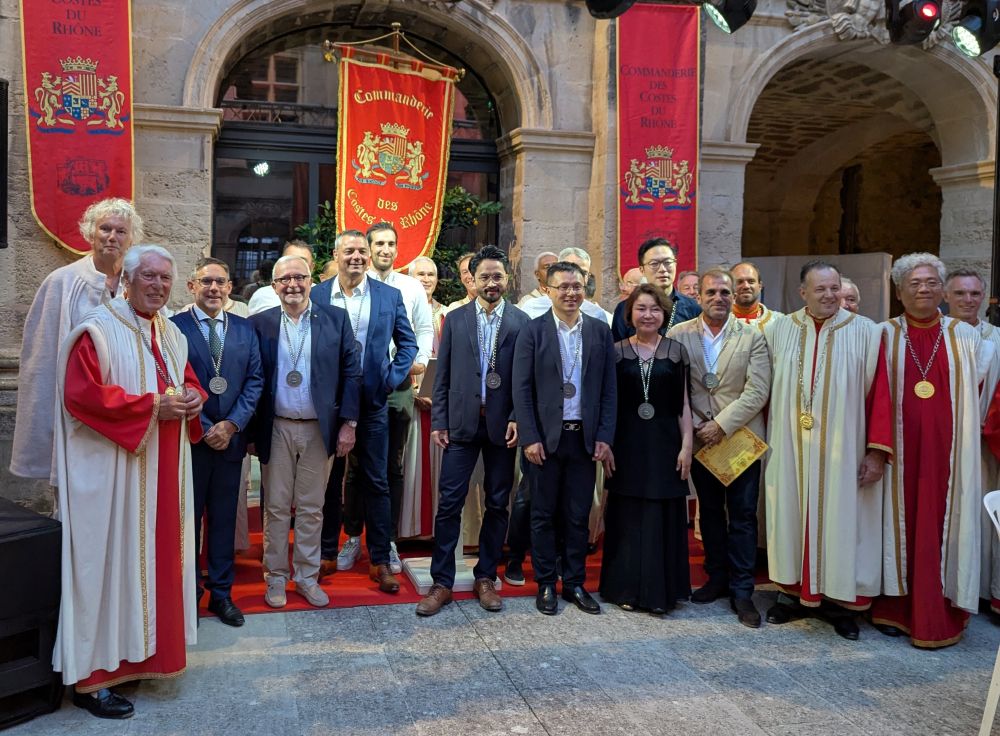 Les commandeurs des Costes du Rhône, autour de leur Grand Maître Patrick Galant, avaient hâte de renouer avec leurs réjouissances d'été au Château de Suze-la-Rousse, tant ils en avaient été frustrés l'an dernier pour cause de perturbations électorales. Les sourires étaient donc de rigueur le 5 juillet dernier, avec la réception de 200 invités venus du monde entier - dont une large délégation de Chine, de Belgique et de Suisse - pour participer aux agapes à la gloire de l'appellation Côtes du Rhône. La fête fut grandiose, avec un vin d'honneur sous le chêne, suivi d'adoubements prestigieux et clôturée d'une 'Disnée' de qualité animée par les chanteurs des Côtes du Rhône et agrémentée par un choix de vins choisis par les Commandeurs. L'occasion également de promouvoir de nouveaux compagnons jurant fidélité aux vins des Côtes du Rhône dans leur vie publique aussi bien que privée. La soirée s'est terminée par une vibrante 'Coupo Santo' à la gloire du terroir et de l'appellation.