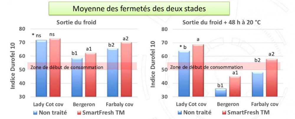 Durant plusieurs années, des données précieuses ont ainsi été obtenues sur l'effet de ces sachets micro perforés. Aucune perte de poids des fruits n'a été constatée (effet limité à 1 % maximum avec l'emballage), quelles que soient les variétés considérées (Lady CotCOV, FaraliaCOV, Fare- lyCOV, MilordCOV, SwiredCOV, MilordCOV et FarbelaCOV).