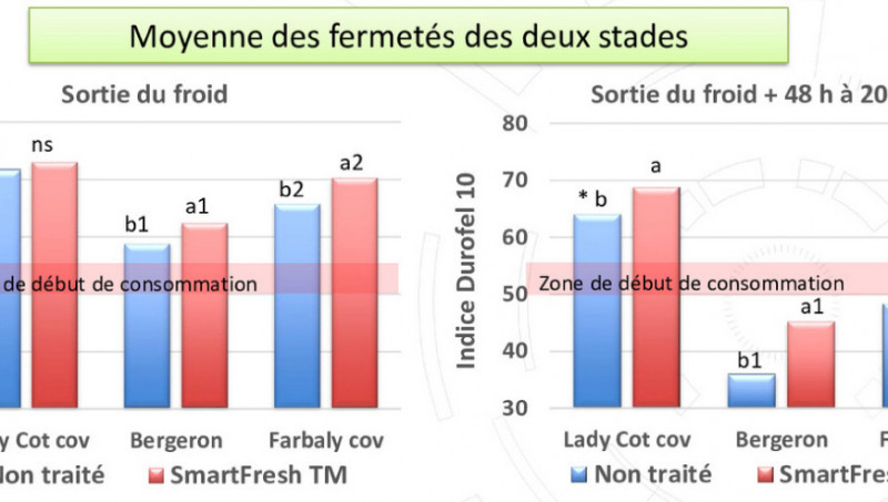 De plus, concernant la fermeté, un gain significatif a été relevé par rapport au témoin après un stockage à 1°C ou 2°C, pendant trois à quatre semaines. "Mais attention, la perte de fermeté s'accélère après ouverture du sachet."