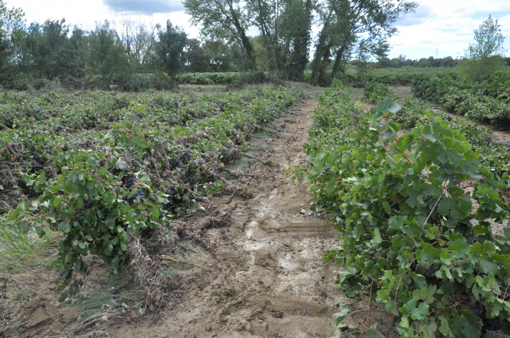 Au départ, la problématique était surtout liée au changement climatique et aux canicules à répétition, "plus longues, plus précoces, plus fréquentes et plus fortes", avec des périodes sèches plus étalées. "Le cumul de pluie annuel est toujours globalement le même, mais ce sont surtout les épisodes méditerranéens qui viennent chambouler la donne et qui vont a priori se poursuivre, avec une fréquence là aussi plus régulière", pointe le vigneron. L'idée alors est justement de canaliser cette eau qui tombe en abondance, pendant quelques heures, voire davantage, entraînant par la même occasion une forte érosion qui n'est pas sans pénaliser la nature du sol - à commencer par la matière organique qui disparaît - voire les vignes elles-mêmes. "Notre objectif était alors d'éviter cette érosion, afin de maintenir un stock et une diffusion de l'eau régulière sur le vignoble."