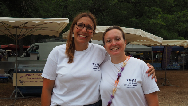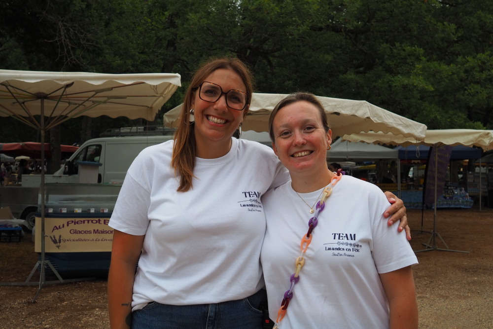 Comme toujours, l'équipe d'une centaine de bénévoles est facile à repérer, en ce début de matinée : il suffit de chercher des gens pressés, équipé d'un tee-shirt blanc porteur du logo de la fête. Un tee-shirt qui fait fureur, d'ailleurs, au stand des organisateurs. Car c'est l'une des nombreuses nouveautés de l'édition 2024 : la vente de goodies - casquettes, chapeaux, sacs et tee-shirts - pour financer l'association "Lavandes en fête".