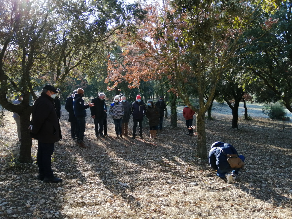 Bien que le sol fût quelque peu gelé, les services de l’État ont pu apprécier – au pied du Ventoux et sous un beau soleil d’hiver – le travail des trufficulteurs. Lors de la démonstration de cavage ont été évoqués le problème récurrent de la sécurité et des vols de truffes, qui ont lieu le plus souvent pendant la nuit, et qui obligent à une grande vigilance des producteurs. Les préfet et sous-préfet ont averti d’un renforcement de la surveillance de la part des forces de l’ordre, et sont également revenus sur la convention avec la Chambre d’agriculture, permettant les échanges rapides d’informations entre la gendarmerie et les agriculteurs. Ils ont aussi questionné les professionnels sur l’impact de la crise sanitaire pour leur activité qui dépend fortement de la restauration, ces derniers soulignant la mobilisation des clients particuliers qui ont fait des achats en se rendant directement sur l’exploitation.