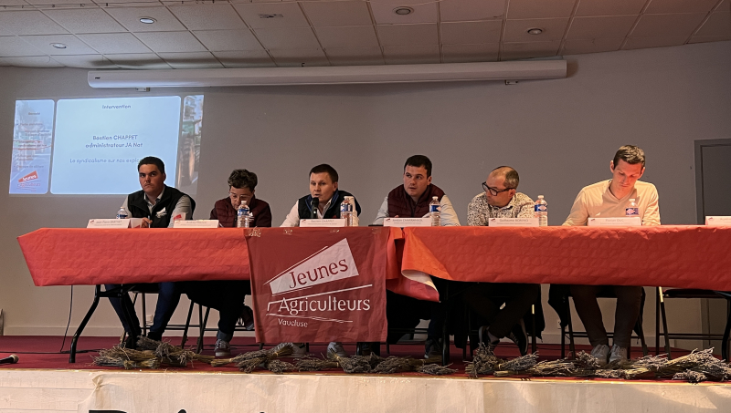 Et les espoirs reposent aussi sur les représentants au niveau local et régional. Avec les élections Chambre d'agriculture, les JA, vainqueurs avec la liste commune de la FDSEA 84, ont obtenu 4 sièges sur les 13 dont les deux syndicats disposent. Trois d'entre eux sont au bureau, un record. Au niveau régional, Jordan Charransol a salué l'élection de Georgia Lambertin à la Chambre : "Avoir une présidente vauclusienne va nous permettre de faire peser notre agriculture dans les orientations." Il compte aussi sur les prochaines élections MSA et a lancé un appel à l'assemblée : "Nous avons une liste commune avec la FDSEA. On a besoin de vous pour voter et pouvoir ensuite mailler le territoire."