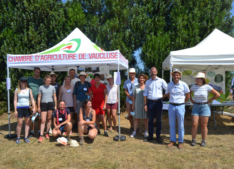Les participants de la matinée porte ouverte du Domaine de Piolenc ont recueilli, avec une attention non dissimulée, les précieuses informations diffusées jeudi 29 août par les équipes du pôle 'vigne et vin' de la Chambre d'agriculture de Vaucluse et leurs partenaires techniques.