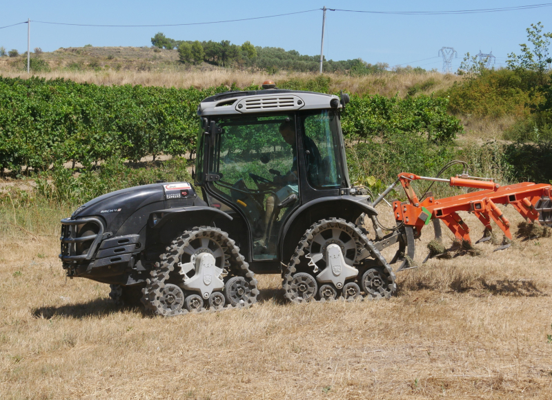 José Tastavy, vigneron languedocien, s'est équipé d'un tracteur à quatre chenilles en complément de ses modèles à roues. Force et stabilité dans la traction sont au rendez-vous.