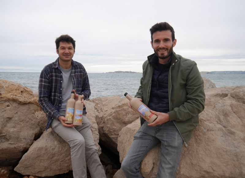 Deux jeunes Marseillais ont mis au point une bouteille de vin conçue en matériaux recyclables. Avec ce produit innovant, ils ciblent la génération des 20-35 ans soucieuse de l’environnement, en quête de vins bio et légers à boire à l’extérieur, entre amis.