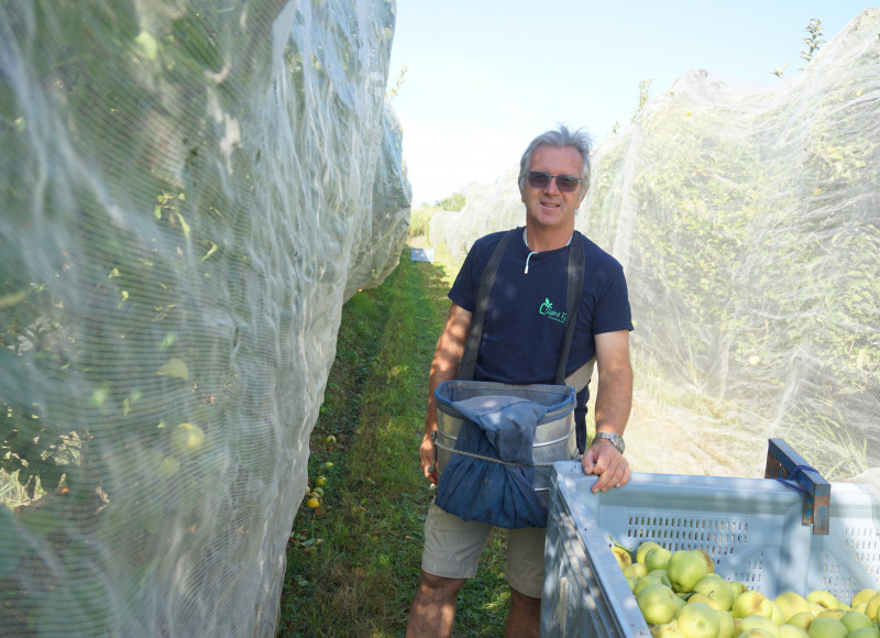 Sur l’exploitation Saint-Félix, Michel André fait partie de la 3e génération d’agriculteurs à s’occuper des vergers familiaux. Sur le point d’installer des panneaux solaires sur ses parcelles, il est l’un des 14 lauréats 2021 du concours des ‘Talents Tech&Bio’.