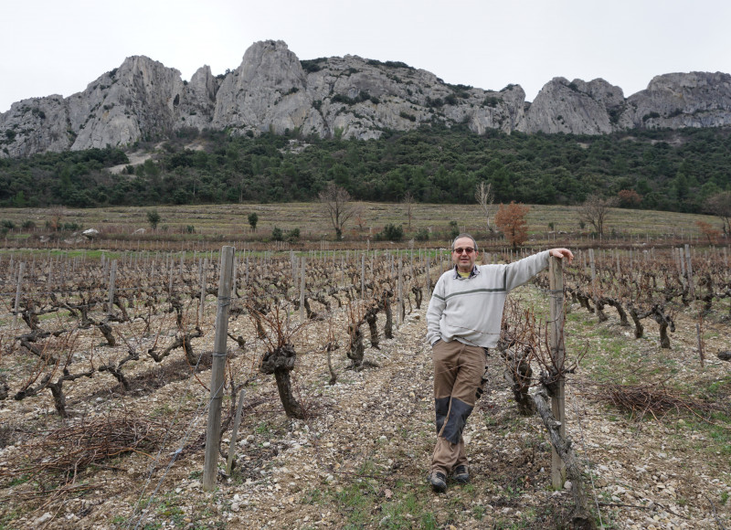 Thierry Faravel a appris à aimer ses vignes à Gigondas. C’est aussi pour lui, un devoir de faire perdurer cet héritage familial. Un engagement fort, où la verticalité caractérise les vins et ce paysage grandiose.