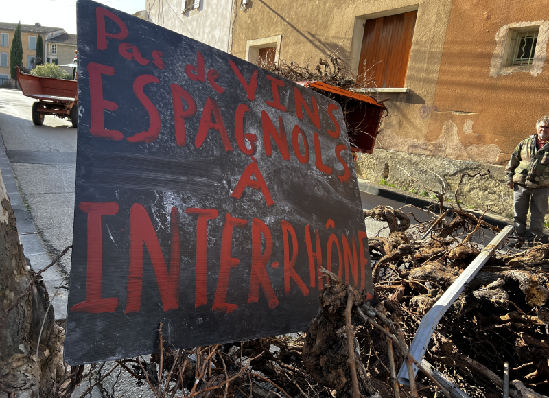 Alors que les blocages se poursuivent sur les autoroutes du département, vendredi 26 janvier, environ 80 vignerons se sont déplacés jusqu'à Sablet devant le domaine d'un administrateur d'Inter Rhône, également courtier et négociant. Importateur massif de vins espagnols, la pos...