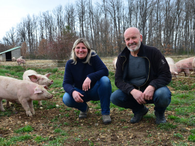 À Saint-Trinit, Claire et Richard Miras cultivent les châtaignes, élèvent des porcs en plein air, et produisent petit épeautre et trèfle violet. Et, le soir venu, deux...